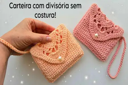 CARTEIRA DE CROCHÊ COM DIVISÓRIA SEM COSTURA